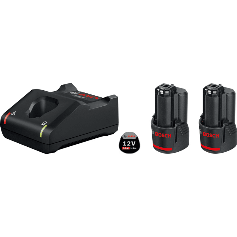 Starter-Set 2 x GBA 12V 3.0Ah + GAL 12V-40, 2 x 12-Volt-Akku mit 3,0 Ah Kapazität und Schnellladegerät, GBA 12V 3.0Ah: Höhere Akkukapazität für 50 % mehr Laufzeit als beim 12V 2,0 Ah Professional-Modell, GAL 12V-40: Hohe Ladegeschwindigkeit für alle 12-Volt-Akkus. Laden von 12V-/3,0-Ah-Akkus von 0 % auf 80 % in nur 36 Minuten., Kompatibel seit 2005: Alle unsere Akkus passen innerhalb der jeweiligen Voltklasse in die neuen und die bereits vorhandenen Bosch Professional Werkzeuge, Karton. 2 x Akku GBA 12V 3.0Ah (1 600 A00 X79). Schnellladegerät GAL 12V-40 Professional (1 600 A01 9R3)