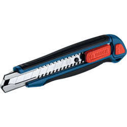 Messer Cuttermesser, Das Bosch Professional Cutter-Messer (18 mm) liefert genaue Schnittergebnisse, sogar unter härtesten Bedingungen. Mit seinem Klingenhalter aus hochwertigem Aluminiumdruckguss ist es extrem robust und langlebig. Das bedienfreundliche Messer liegt dank seiner ergonomischen Form und dem weichen Softgriff sicher und bequem in der Hand, und die Klinge lässt sich schnell und werkzeuglos wechseln. Hängeschild