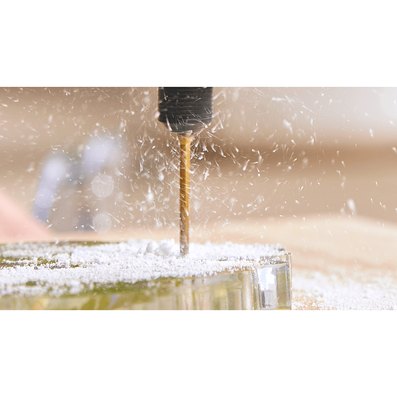 Was du damit machen kannst:. Dieses titanbeschichtete Bohrerset ist eine praktische Ergänzung für deinen Dremel-Werkzeugkasten. Es enthält 7 Bohrer und einen Zubehörhalter zur übersichtlichen Aufbewahrung. Die Bohrer eignen sich ideal zum Bohren in Holz, Kunststoff, Weichmetall und Trockenbauwände. Hergestellt aus hochwertigem Edelstahl mit tiefem Gewinde und einer Titanbeschichtung sind diese Bohrer auf Langlebigkeit ausgelegt. Die Bohrer sind in Größen von 0,8 mm bis 3,2 mm erhältlich. Anwendung. Wähle die passende Bohrer-Größe für dein Projekt. Bohre mit der Spitze des Bohrers gerade und im 90°-Winkel in das Material. Alle Bohrer haben den gleichen Schaftdurchmesser von 3,2 mm. Dadurch brauchst du keine unterschiedlichen Spanndorne und der Zubehörwechsel wird beschleunigt. Materialien. Kann auf Holz, Kunststoffen, Weichmetallen und Trockenbauwänden verwendet werden. Empfohlene Gewschwindigkeit. 20.000 - 30.000 U/min.