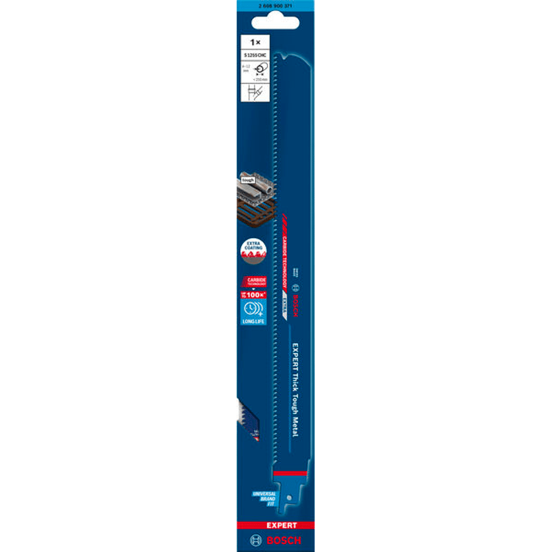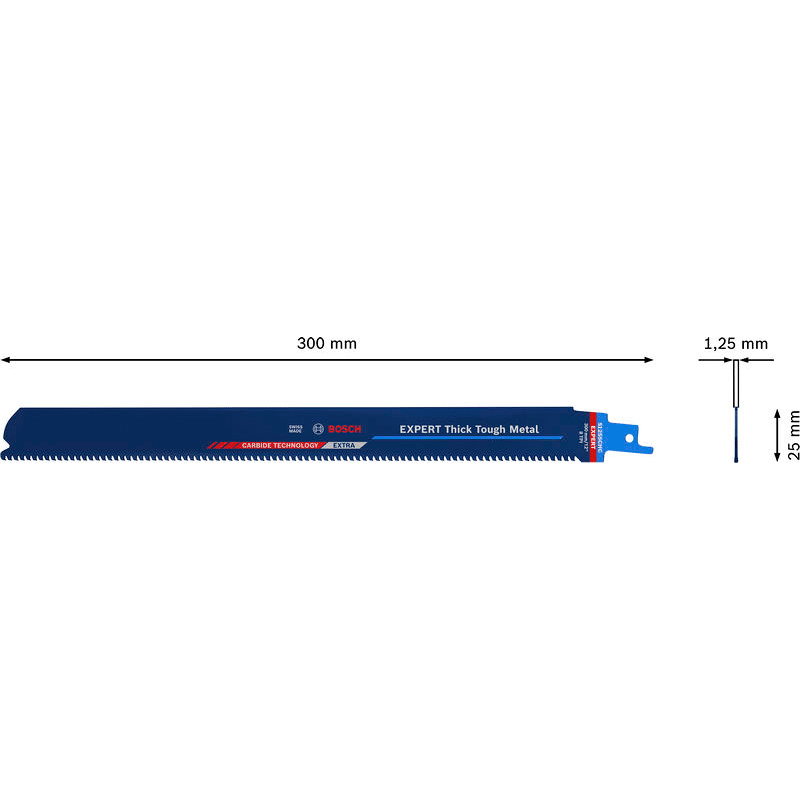 Herausragende Lebensdauer in dickem, zähem Metall! Breiter Körper für präzise, gerade Schnitte Das Schneiden durch dickes Metall wie Stahlprofile oder schwere Gussrohre gehört wahrscheinlich nicht zu deinen Lieblingsarbeiten. Klempner, Renovierer und Abbrucharbeiter wissen alle, dass für diese harte Arbeit selbst mit einer Hochleistungs-Säbelsäge Schweiß und Muskelkraft erforderlich sind. Das EXPERT Thick Tough Metal-Blatt schneidet nicht nur dickes Metall, es bietet auch eine außerordentlich lange Lebensdauer bei härtesten Einsätzen. Mit dem Bosch EXPERT Thick Tough Metal Säbelsägeblatt könntest du Gefallen am Schneiden von dickem Stahl und Gusseisen finden. Überragende Lebensdauer dank Bosch Carbide Technology