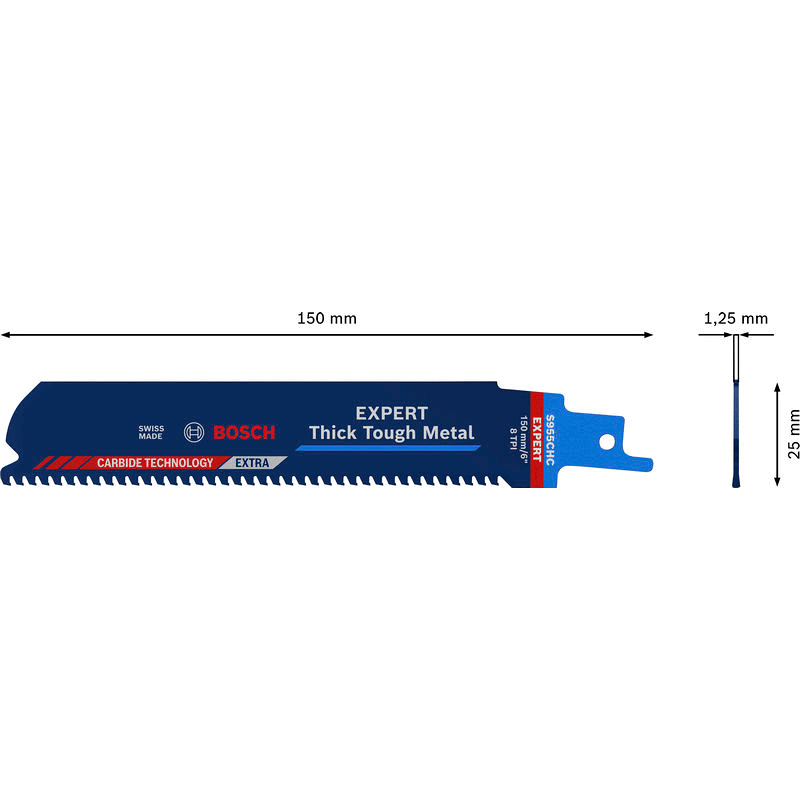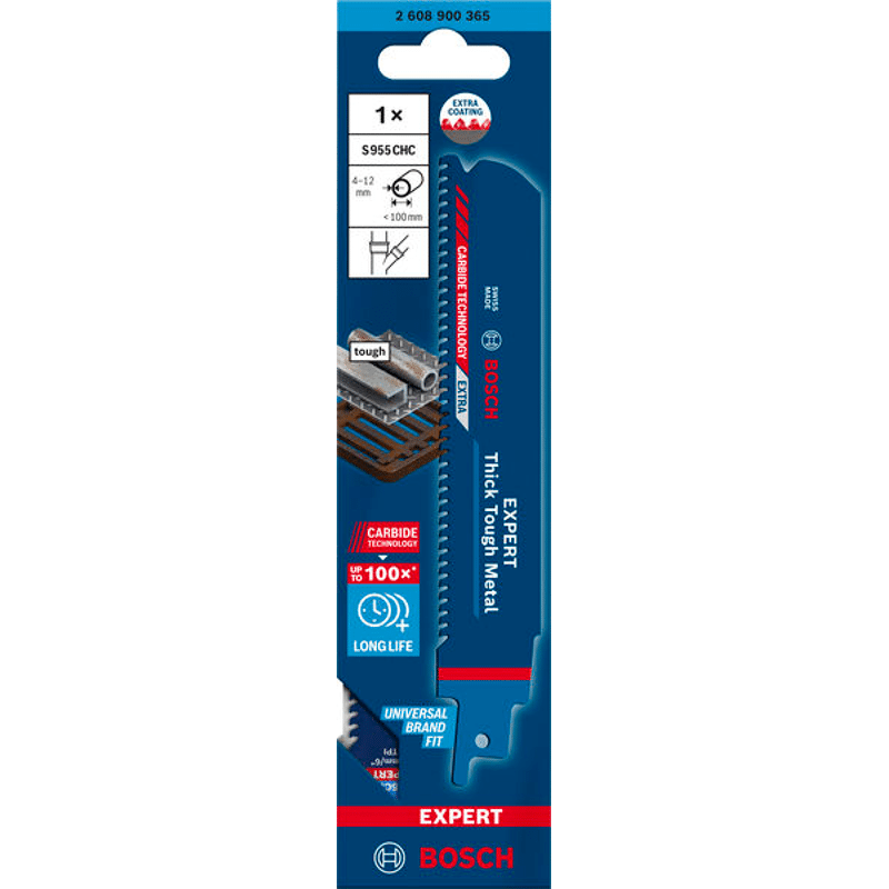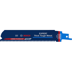 Herausragende Lebensdauer in dickem, zähem Metall! Breiter Körper für präzise, gerade Schnitte Das Schneiden durch dickes Metall wie Stahlprofile oder schwere Gussrohre gehört wahrscheinlich nicht zu deinen Lieblingsarbeiten. Klempner, Renovierer und Abbrucharbeiter wissen alle, dass für diese harte Arbeit selbst mit einer Hochleistungs-Säbelsäge Schweiß und Muskelkraft erforderlich sind. Das EXPERT Thick Tough Metal-Blatt schneidet nicht nur dickes Metall, es bietet auch eine außerordentlich lange Lebensdauer bei härtesten Einsätzen. Mit dem Bosch EXPERT Thick Tough Metal Säbelsägeblatt könntest du Gefallen am Schneiden von dickem Stahl und Gusseisen finden. Überragende Lebensdauer dank Bosch Carbide Technology