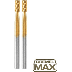 Die Zubehörfamilie Dremel® Max, die von unseren Ingenieuren entwickelt wurde, bietet maximale Lebensdauer und dauerhafte Leistung. Das Hochleistungs-Fräsmesser Dremel Max 194DM ist mit Titannitrid beschichtet und hält damit 2-mal länger als das unbeschichtete Standard-Zubehör Die Zubehörfamilie Dremel® Max, die von unseren Ingenieuren entwickelt wurde, bietet maximale Lebensdauer und dauerhafte Leistung. Das Hochleistungs-Fräsmesser Dremel Max 194DM ist mit Titannitrid beschichtet und hält damit 2-mal länger als das unbeschichtete Standard-Zubehör Was kannst du damit tun? Was kannst du damit tun? Das 3,2-mm-Hochgeschwindigkeits-Fräsmesser ist gut für den detaillierten Materialabtrag in Anwendungen wie dem Formen, Schnitzen, Gravieren, Aushöhlen, Präzisionsschneiden, Nutenfräsen, Schlitzfräsen, Inlay-Arbeiten, Bohren konischer Löcher oder Freihandfräsen geeignet. Die Zylinderform des Fräsmessers ermöglicht einen tiefen Materialabtrag, das Schneiden glatter Flächen, das Abrunden von Kanten sowie Schräg und V-Schnitte. Die Spitze des Zubehörs eignet sich für Schlitze mit flachem Boden und Nuten, Schnitte mit flacher Seite sowie V-Schnitte, wenn das Werkzeug in einem Winkel von 45 Grad gehalten wird Das 3,2-mm-Hochgeschwindigkeits-Fräsmesser ist gut für den detaillierten Materialabtrag in Anwendungen wie dem Formen, Schnitzen, Gravieren, Aushöhlen, Präzisionsschneiden, Nutenfräsen, Schlitzfräsen, Inlay-Arbeiten, Bohren konischer Löcher oder Freihandfräsen geeignet. Die Zylinderform des Fräsmessers ermöglicht einen tiefen Materialabtrag, das Schneiden glatter Flächen, das Abrunden von Kanten sowie Schräg und V-Schnitte. Die Spitze des Zubehörs eignet sich für Schlitze mit flachem Boden und Nuten, Schnitte mit flacher Seite sowie V-Schnitte, wenn das Werkzeug in einem Winkel von 45 Grad gehalten wird Wie funktioniert es?. Wie funktioniert es?. Lass das Zubehör und dein Dremel-Multifunktionswerkzeug die Arbeit machen, indem du keine Gewalt ausübst und nicht allzu stark drückst. Um ein gute Ergebnis zu erzielen, verwende die Seiten des Zubehörkopfes in einem Winkel von weniger als 90 Grad. Du hast das Gefühl, das Zubehör rattert mehr, als dass es Material entfernt? Erhöhe die Drehzahl, um ein saubereres Ergebnis zu erhalten. Sieh dir zuerst das Symbol oder das Video an, um das Ergebnis zu prüfen, oder teste erst mit einem Reststück, bevor du mit deinem Heimwerkerprojekt beginnst. Erweitere deine Möglichkeiten mit folgenden Vorsatzgeräten: biegsame Welle (225). Werkzeugständer zum Aufhängen der biegsamen Welle (2222). Präzisionshandgriff (577). 3-in-1 Multi-Schraubstock (2500) Lass das Zubehör und dein Dremel-Multifunktionswerkzeug die Arbeit machen, indem du keine Gewalt ausübst und nicht allzu stark drückst. Um ein gute Ergebnis zu erzielen, verwende die Seiten des Zubehörkopfes in einem Winkel von weniger als 90 Grad. Du hast das Gefühl, das Zubehör rattert mehr, als dass es Material entfernt? Erhöhe die Drehzahl, um ein saubereres Ergebnis zu erhalten. Sieh dir zuerst das Symbol oder das Video an, um das Ergebnis zu prüfen, oder teste erst mit einem Reststück, bevor du mit deinem Heimwerkerprojekt beginnst. Erweitere deine Möglichkeiten mit folgenden Vorsatzgeräten: biegsame Welle (225). Werkzeugständer zum Aufhängen der biegsamen Welle (2222). Präzisionshandgriff (577). 3-in-1 Multi-Schraubstock (2500) Empfohlene Drehzahl (1/min):. Empfohlene Drehzahl (1/min):. Aluminium 30.000. Messing 30.000. Kupfer 30.000. Hartholz 35.000. Weichholz 20–25.000. Kunststoff 35.000. Stahl 20–25.000 Aluminium 30.000. Messing 30.000. Kupfer 30.000. Hartholz 35.000. Weichholz 20–25.000. Kunststoff 35.000. Stahl 20–25.000