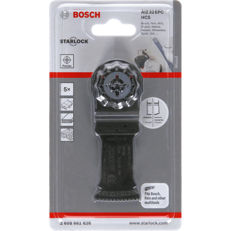 Das Tauchsägeblatt Starlock AIZ 32 EPC ermöglicht präzise Schnitte in Holz. Seine abgerundete Blattspitze (Curved-Tec) ermöglicht präzise und glatte Tauchschnitte. Das robuste Starlock-Aufnahmesystem reduziert Lateralschwingung und ermöglicht mittels direkter Kraftübertragung präzise Schnitte. Sein zur Basis verjüngtes Blatt minimiert Verklemmen und transportiert Späne schneller ab. Dieses Produkt wird verwendet für das Tauchsägen in Weichholz, das Sägen von Aussparungen in Möbelbauteile und das bündige Ablängen von Holzbauteilen. Das Starlock-Aufnahmesystem ermöglicht einen schnellen Blattwechsel ohne Blattberührung in drei Sekunden. Das Aufnahmesystem ermöglicht durch seine dreidimensionale enge Passung maximale Kraftübertragung zwischen Maschine und Zubehör.
