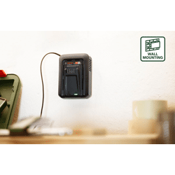 Ladegerät AL 18V-44. Praktische Kompatibilität – Laden aller 18V POWER FOR ALL-Akkus. Kompatibel mit allen Home & Garden 18V-Akkus. Schnellladen: ~59 min für 4,0-Ah-Akku. Integrierte Wandhalterung und Gummifüße für einen sicheren Stand auf allen Oberflächen. POWER FOR ALL: Ein Akku und Ladegerät für ein komplettes Home & Garden Werkzeugsystem. Ladegerät AL 18V-44. Karton