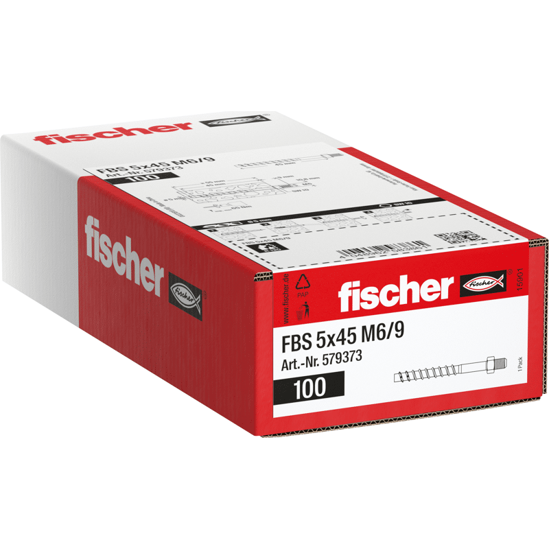 Die fischer Betonschraube FBS 5 Stockschraube mit Außengewinde ist eine Verankerungslösung aus galvanisch verzinktem Stahl deal für die Befestigung von Schellen. Beim Eindrehen der Betonschraube in das Bohrloch schneiden sich die Gewindeflanken formschlüssig in den Untergrund und sorgen für Tragfähigkeit. Der geringe Bohraufwand spart Zeit bei der Montage. Die empfohlenen Lasten für Beton sowie die Eignung für Mauerwerk mit dichtem Gefüge, wie Kalksandvollstein, sowie das Brandgutachten nach R 120 garantieren zusätzlich Sicherheit.