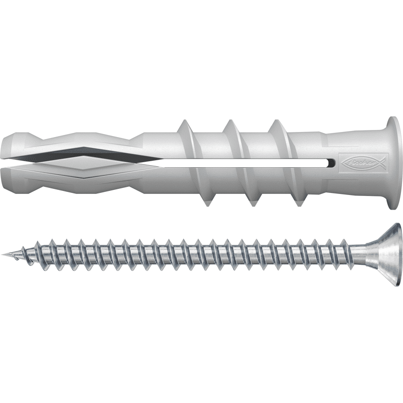 Der fischer Porenbetondübel FFA ist ein Spezialdübel für die Befestigung in Porenbeton. Er ist bestens geeignet, um Regale, Bilder, Leuchten sowie Heizkörper sicher in Porenbeton zu befestigen. Der aus hochwertigem Nylon hergestellte Dübel wird nach dem Vorbohren in der Vorsteckmontage gesetzt. Das spiralförmige Außengewinde schneidet sich dabei formschlüssig in den Porenbeton. Zusätzlich spreizt der Dübel beim Eindrehen der Schraube auf. Eine hohe Tragfähigkeit und damit ein Plus an Sicherheit ist gewährleistet. Durch die Aufnahme von Holz- und Spanplattenschrauben in verschiedenen Durchmessern als auch metrischen Schrauben ermöglicht der Porenbetondübel eine flexible Schraubenauswahl.