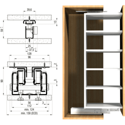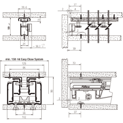 Bodenmontage - Einbaubreite 128 mm (158 mm mit Dämpfung) - Tragkraft dyn. bis 200 kg - Massiv-Kunststoffrollen, kunststoffummantelte Stahlkugellager - Null Absenkung im ausgezogenem Zustand - Schnelle und leichte Montage durch Aufschiebetechnik - Optimaler und leiser Lauf, auch unter höherer Belastung - Seiten und Höhenverstellung integriert - Gegenführung für absolute Seitenstabilität im Liefer-Set integriert - LGA getestet nach DIN 4554 mit 50.000 Doppelhüben - Rückanschlag - Stahl, weiß pulverbeschichtet Verpackungseinheit: 1 Set = Boden- und Deckenführung