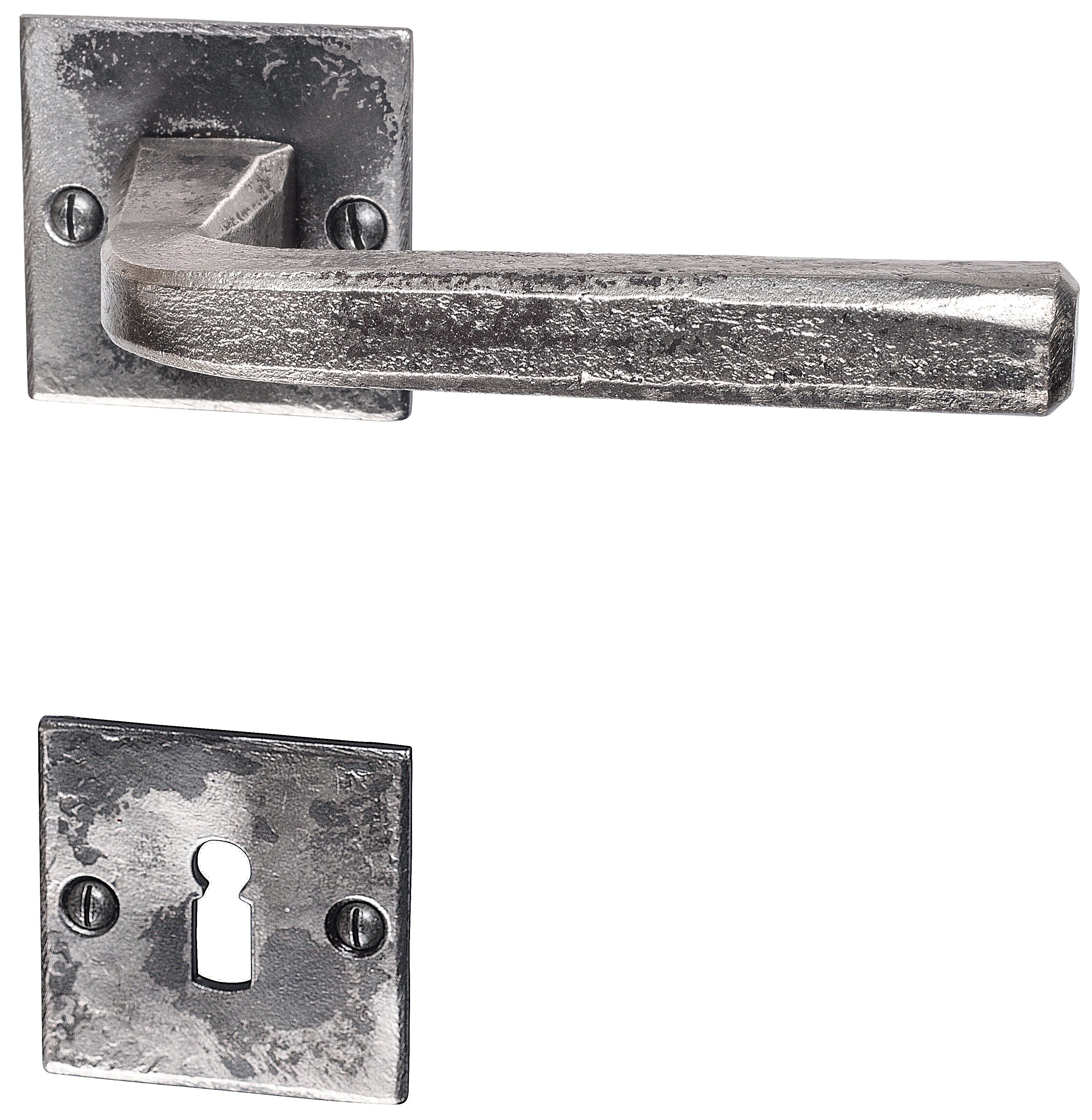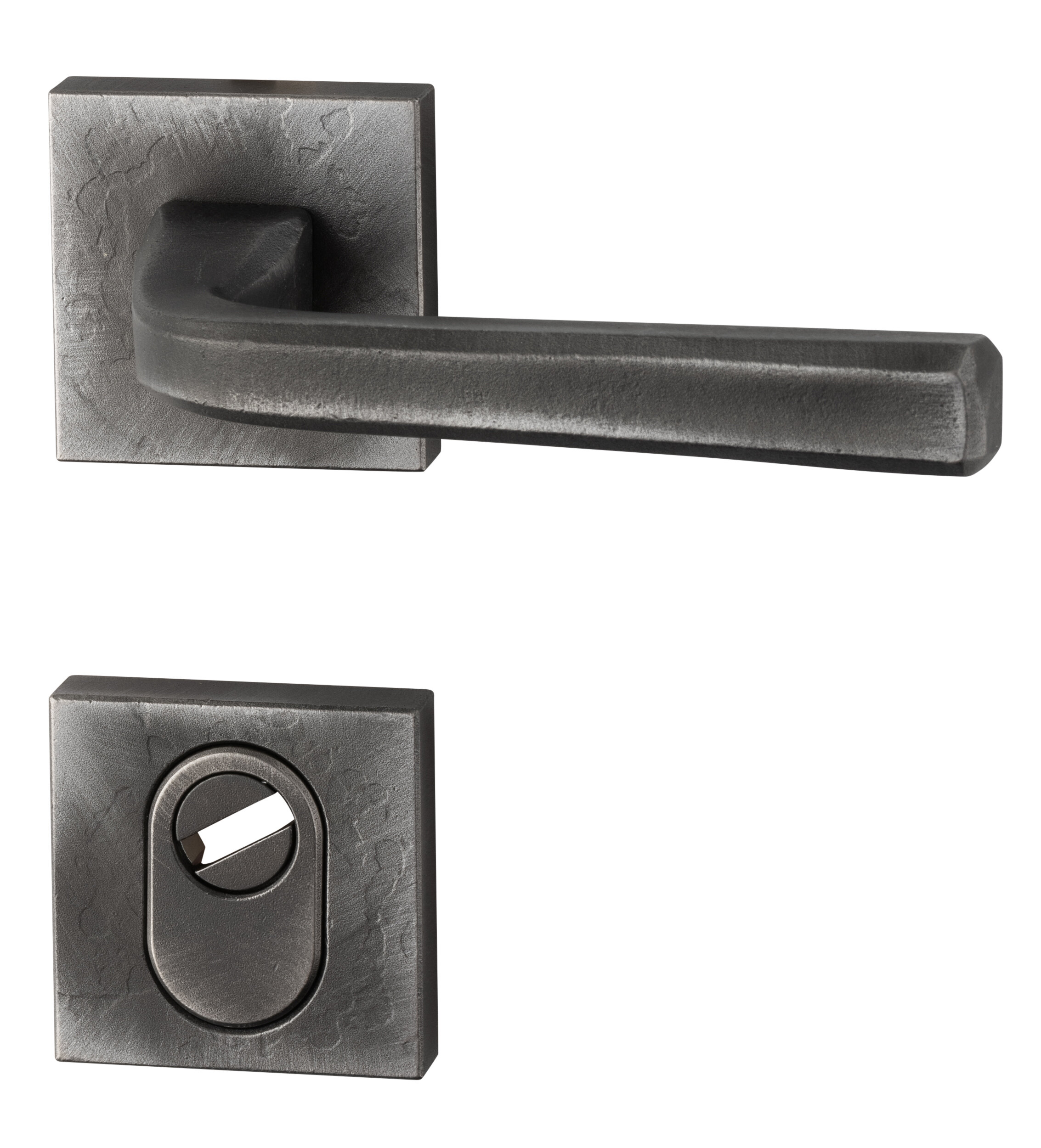 Rosettengarnitur quadratisch Serie Obertauern aus Schmiedeeisen, mit Rückholfeder, inkl. Schrauben