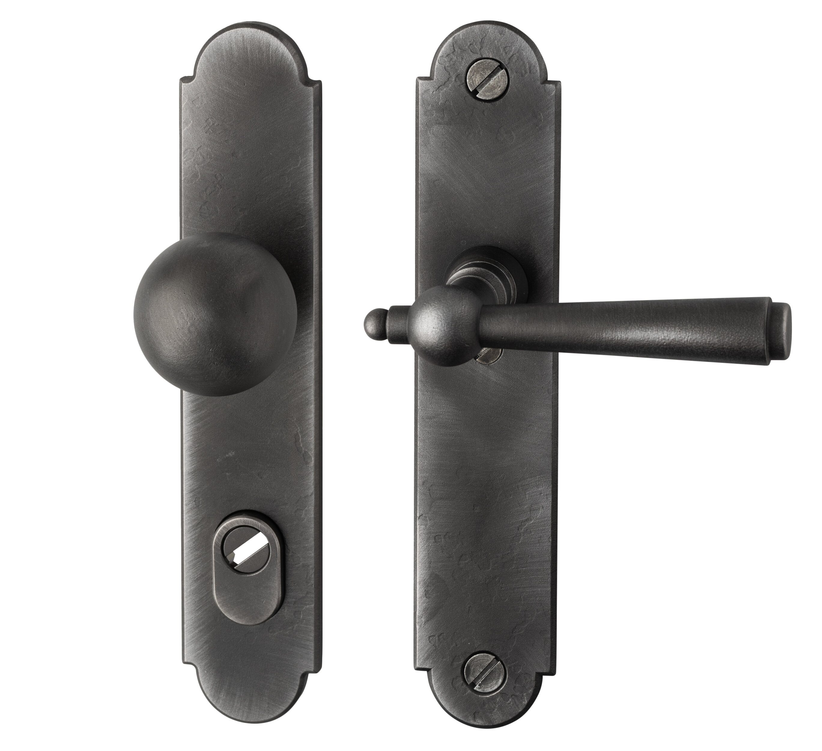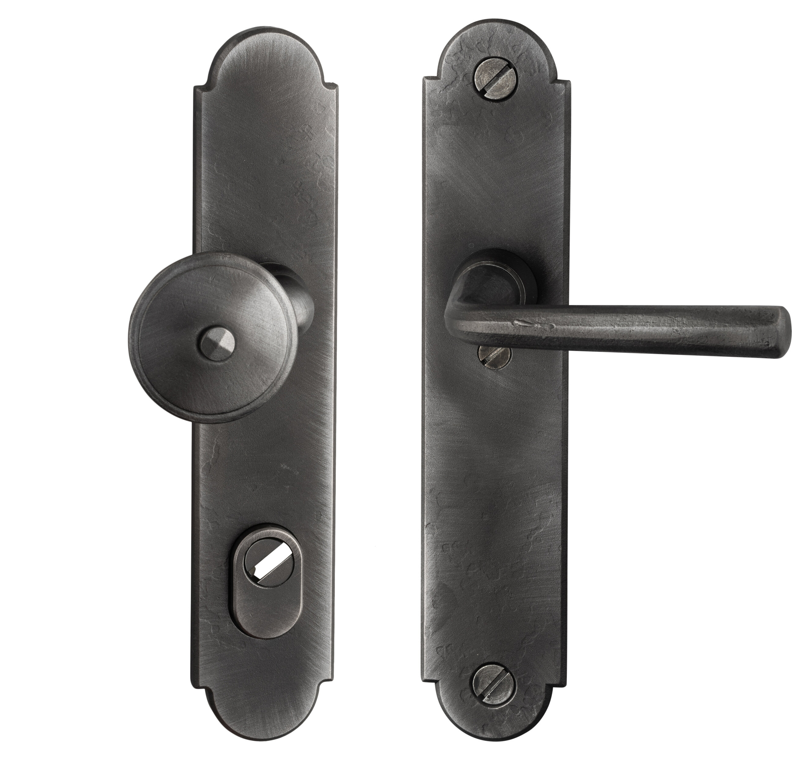 SI-Langschild-Drückergarnitur Obertauern mit ZA ÖNORM verzinkt antik patiniert
