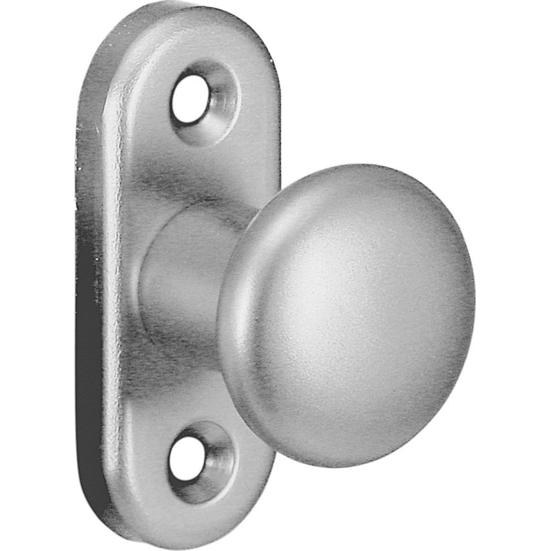 Aluminium, Knopf-ø 36 mm, gerade Form, fest auf Rosette montiert, Ovalrosette 26 x 65 mm, sichtbare Befestigung.
