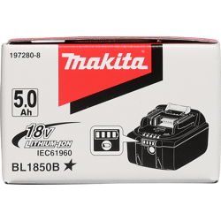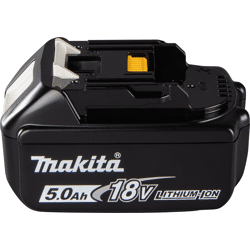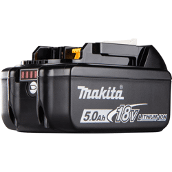 5,0 Ah Li-Ionen Akku mit Ladezustandsanzeige. Leistungsstarker Akku für 18 V LXT Makita Maschinen. Ideal für Werkzeuge mit hohem Stromverbrauch. Ladezeit mit einem Schnellladegerät ca. 45 Minuten.