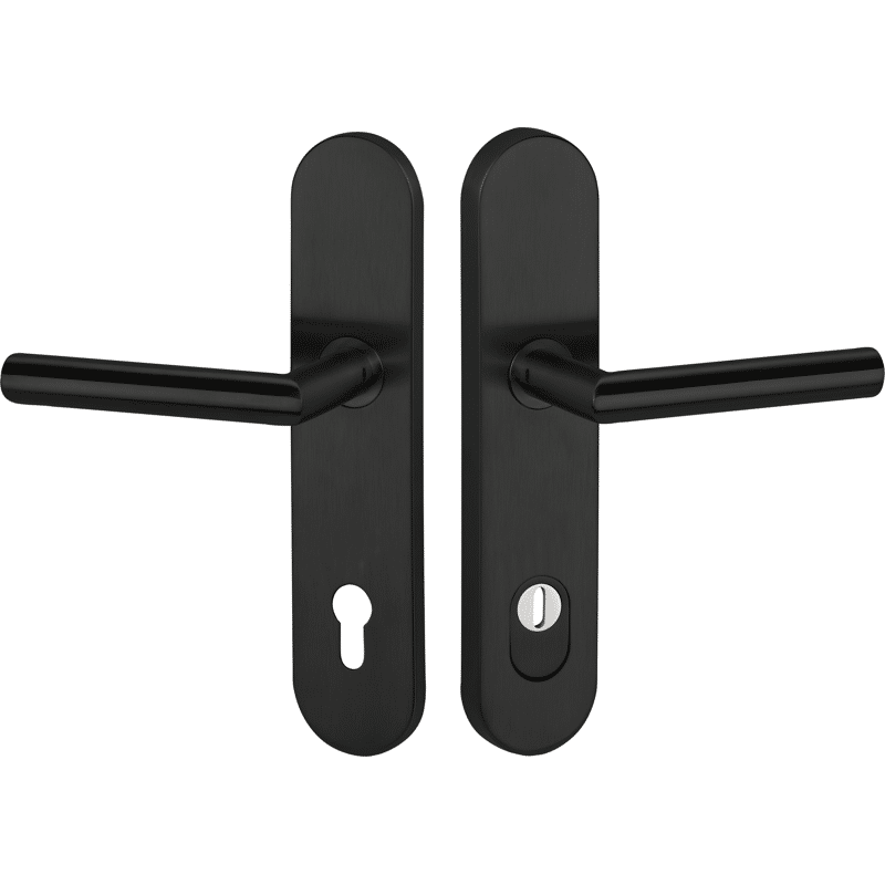 Die Schutz-Drückergarnitur ist aus hochwertigem Edelstahl gefertigt und eignet sich ideal für Wohnungseingangstüren.