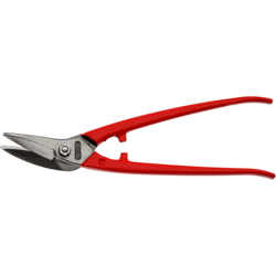 Spezialschere für Kurvenschnitte und lange durchlaufende Schnitte, Schneiden induktiv gehärtet.