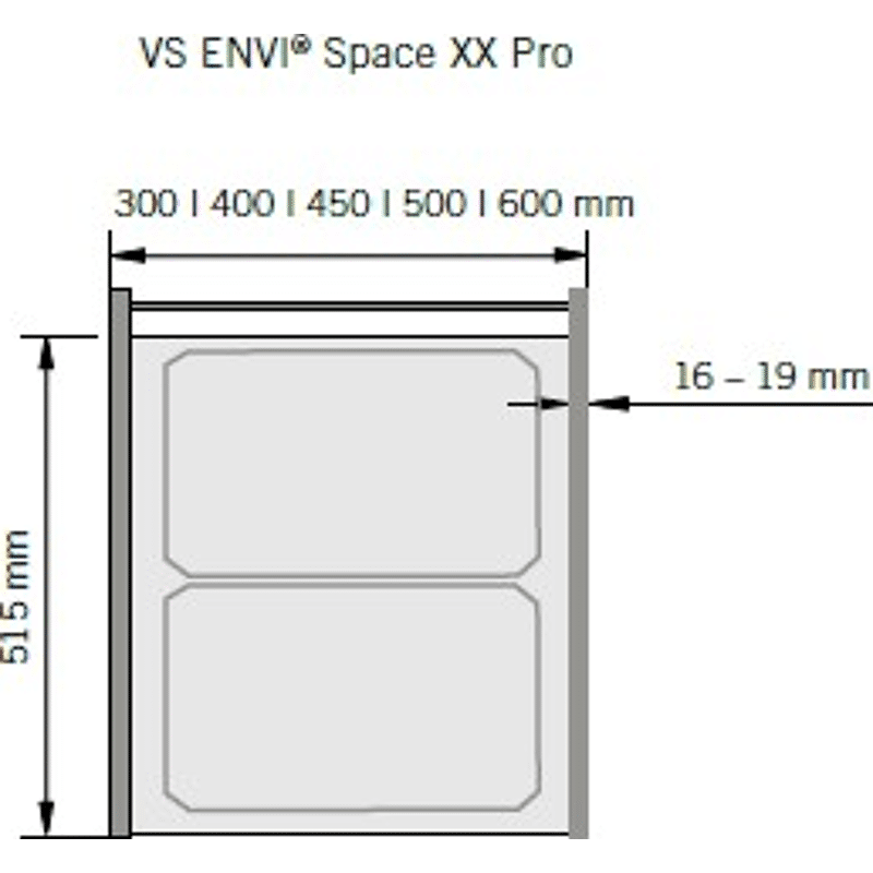 Wäschetrennsystem, WASH-Space XX Pro, 300er, 1x32/1x1,2 l, lavagrau